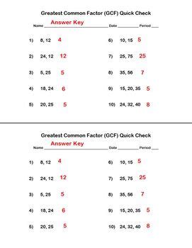 Download Greatest Common Factor Answer Key Epub