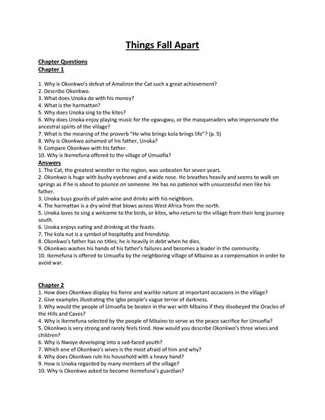 Read Things Fall Apart Study Guide Questions Answers Epub