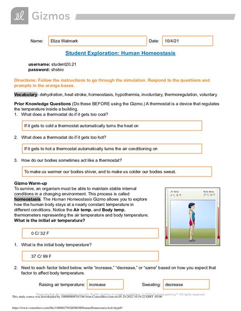 Download Student Exploration Human Homeostasis Gizmo Answer Key Kindle Editon